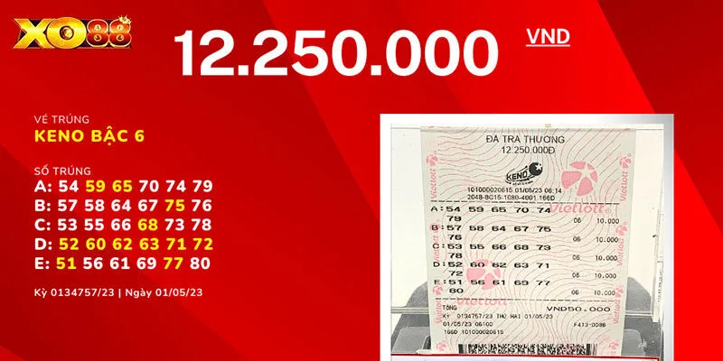Dựa theo kết quả của vòng quay Keno, bạn có thể đối chiếu để biết mình trúng hay trượt. Nếu con số trùng khớp với kết quả càng nhiều, giải thưởng sẽ càng cao. Trong đó, giá trị phần thưởng cao nhất có thể lên tới 2 tỷ đồng.