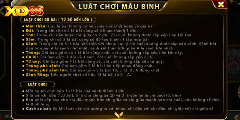 Dù tham gia giải trí bất kỳ sản phẩm nào bạn cũng cần nắm vững quy tắc và luật lệ. Điều này giúp bạn sở hữu nền tảng vững chắc để tư duy chiến thuật và tạo cơ hội giành chiến thắng. Ngay sau đây chúng tôi sẽ chia sẻ về quy tắc xếp bài mậu binh, các thuật ngữ chính được sử dụng và cách phân định thắng thua.