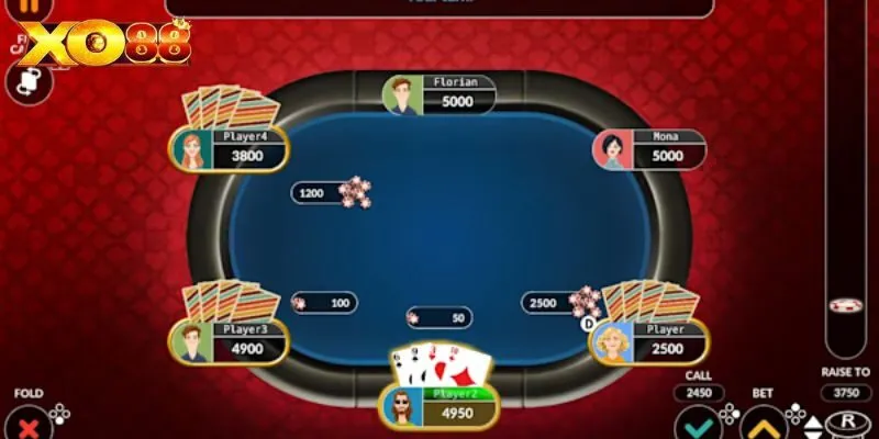 Trên bàn cược, các tay chơi được chia 4 lá bài riêng và cần giữ bí mật. Người ngồi bên trái sẽ tiến hành đặt cược đầu tiên và có quyền lựa chọn những hành động như bet, raise, fold.
