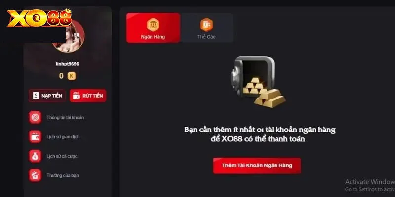 - Ngân hàng nhận thưởng người chơi liên kết với hệ thống nhà cái phải chính chủ và thông tin cá nhân trùng khớp dữ liệu đăng ký tài khoản XO88.
